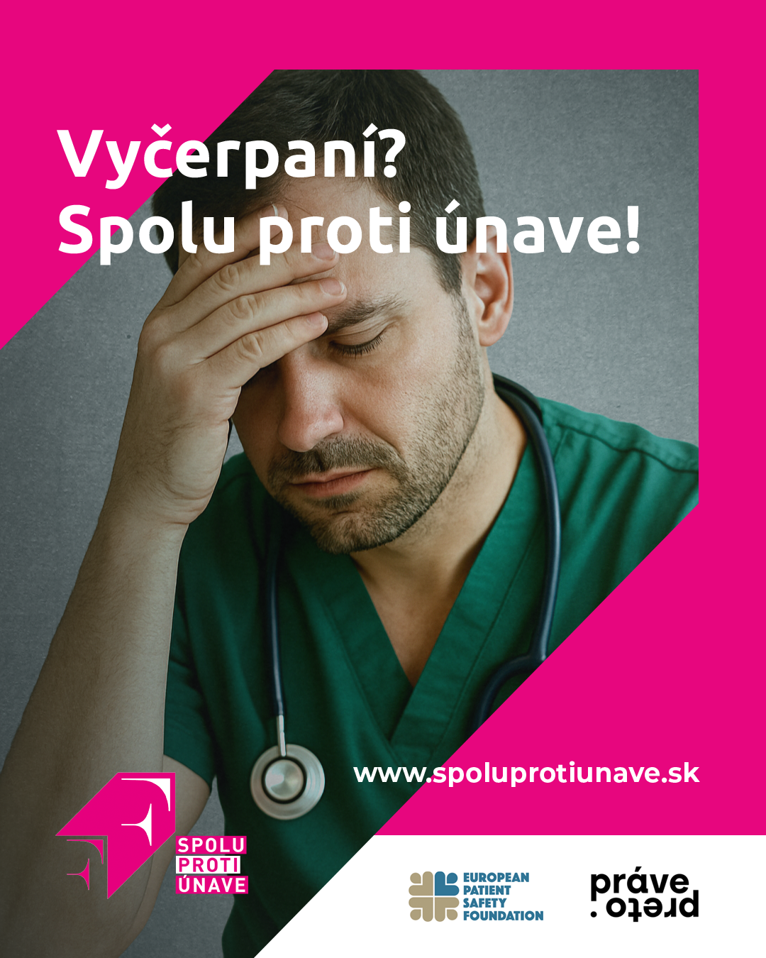 Podľa WHO až 84 % zdravotníkov pravidelne zažíva výraznú fyzickú a psychickú únavu. Jeden z troch zdravotníkov priznáva, že únava a vyčerpanosť ovplyvňujú kvalitu jeho rozhodovacích procesov. Vyčerpanie znižuje koncentráciu a môže viesť k menším chybám, ale aj závažným medicínskym pochybeniam. Únava a jej dôsledky sa týkajú aj zdravotníckeho personálu na Slovensku, kde je však táto téma stále tabuizovaná. Občianske združenie Práve preto v spolupráci s Európskou nadáciou pre bezpečnosť pacienta (EUPSF), spúšťajú osvetovú kampaň „Vyčerpaní? Spolu proti únave!