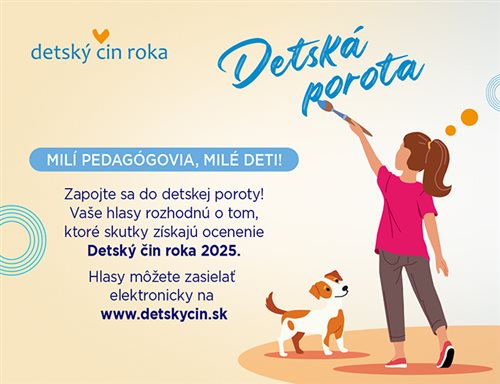 Školy môžu zasielať svoje hlasy elektronicky na www.detskycin.sk Online anketa pre verejnosť v spolupráci s darcovským portálom ĽudiaĽuďom.sk