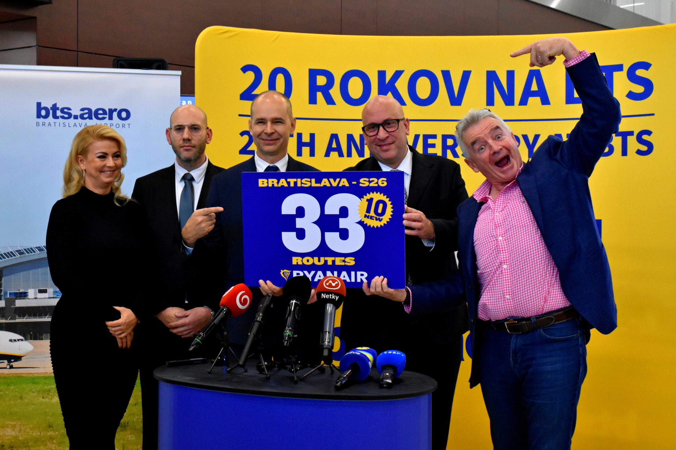 Celkovo 33 pravidelných leteckých liniek, z toho 10 nových, bude počas letného letového poriadku 2026 zabezpečovať z Letiska M. R. Štefánika letecký dopravca Ryanair. Svoju rekordnú letnú ponuku leteckých spojení predstavil v Bratislave šéf najväčšieho nízkonákladového leteckého dopravcu v Európe – Michael O′Leary z Ryanair, ktorý si zároveň v odletovej hale bratislavského letiska pripomenul 20. výročie pôsobenia Ryanairu v Bratislave.